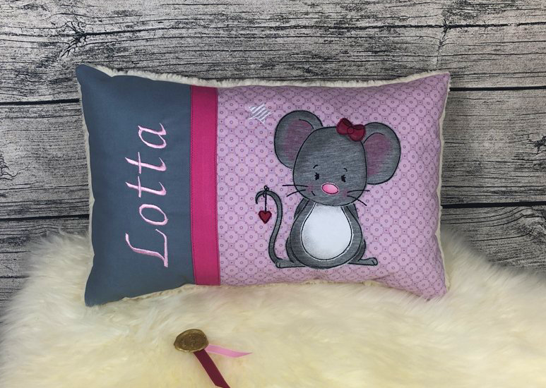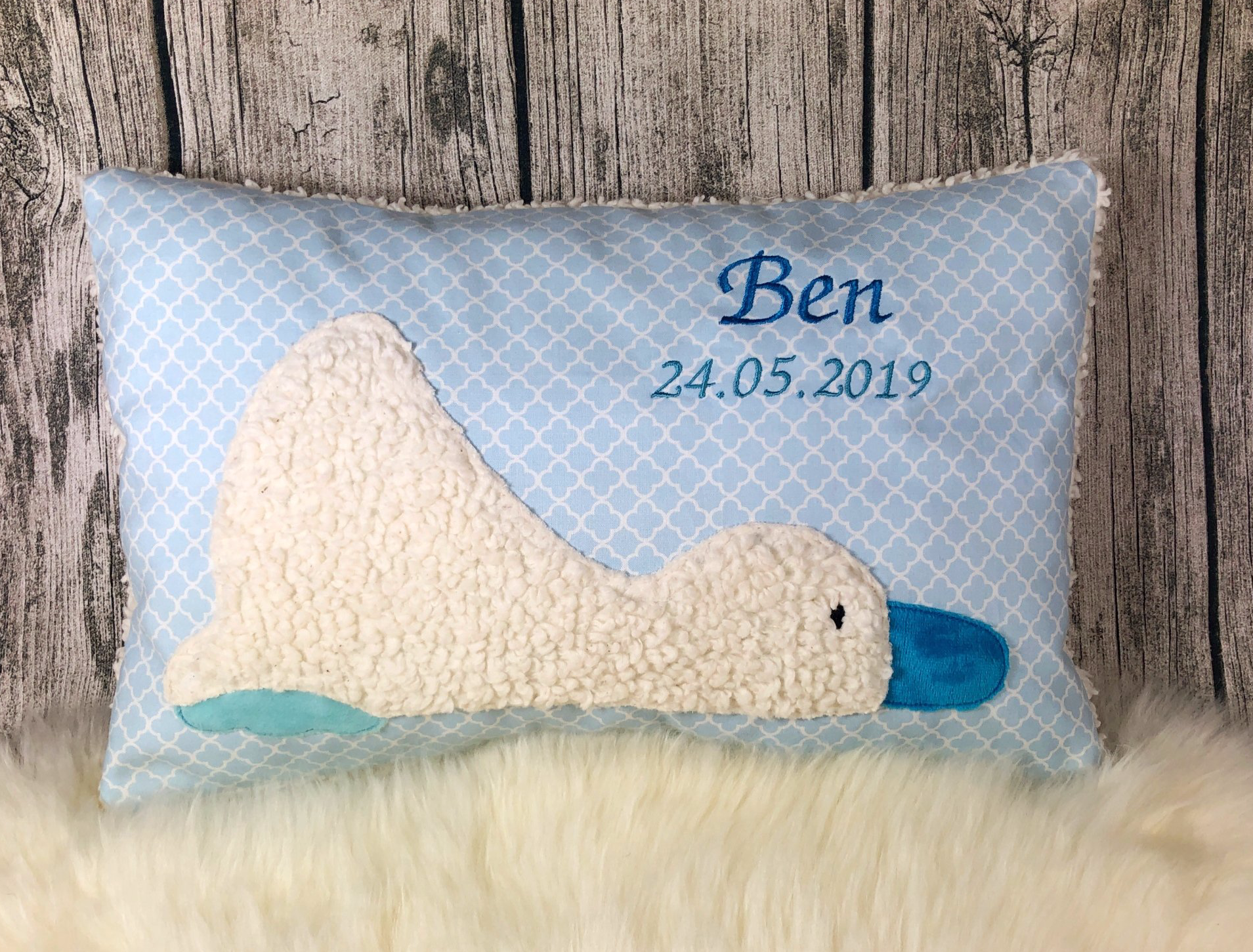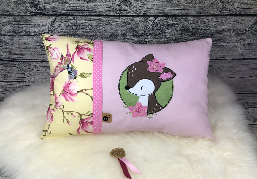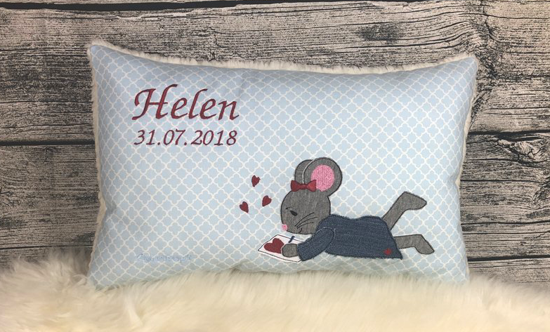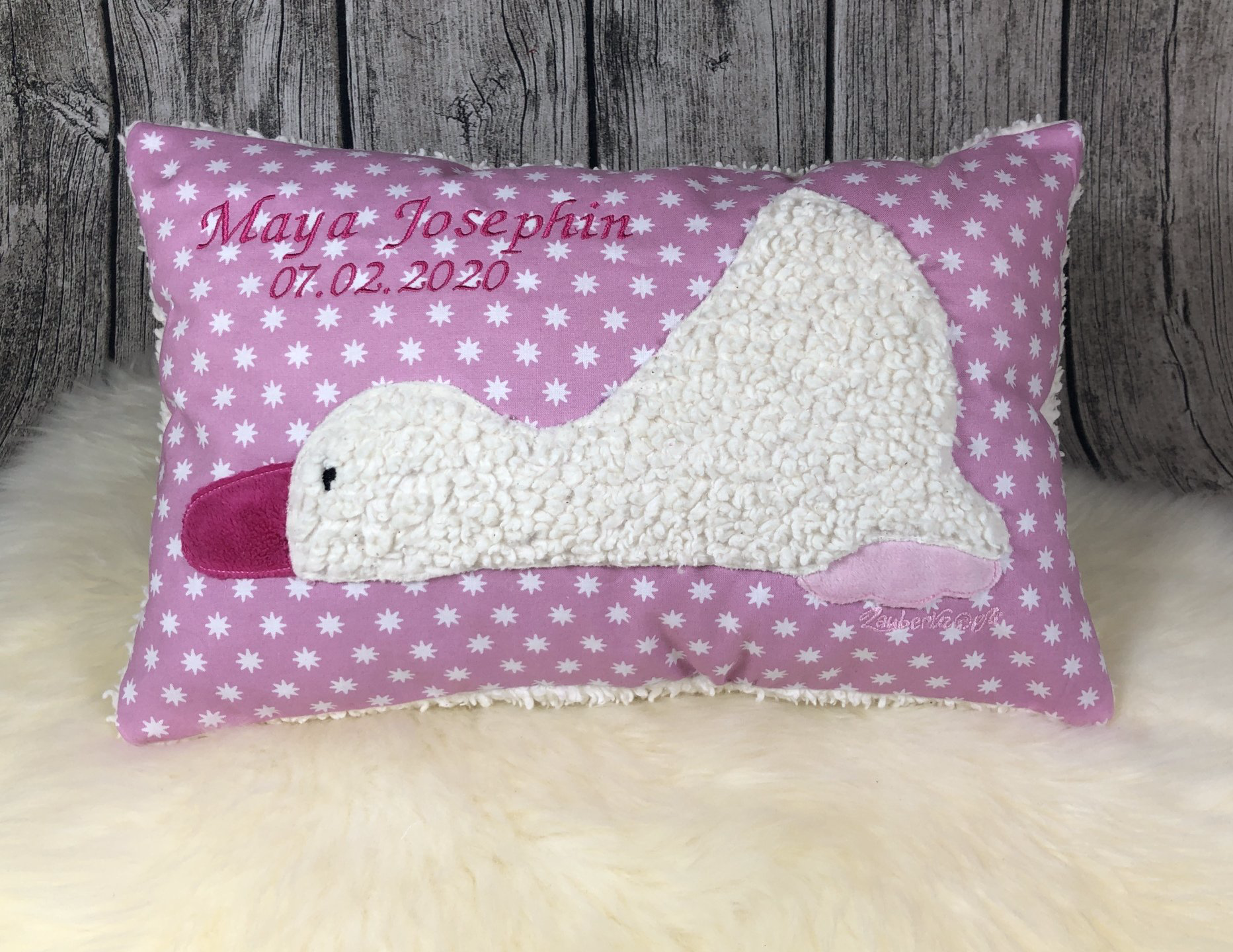 Here we show you a few designs of birth pillows. Other motifs are no problem. Just talk to us and tell us what you want. We will find something very special for you. We make most of the pillows in the size 40cm x 25cm. You can choose between a hotel closure with an inner pillow or a completely sewn pillow with a cuddly teddy fabric back. Of course you can wash the entire pillow at 30 degrees.