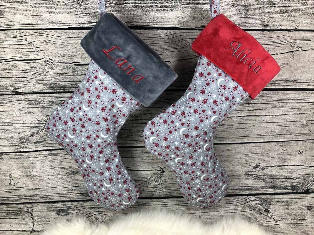 Unsere Nikolaussocken sind am Schaft kuscheligweich und richtig dick gefüttert. Vom Aufhänger bis Fußspitze sind sie ca: 45cm groß.